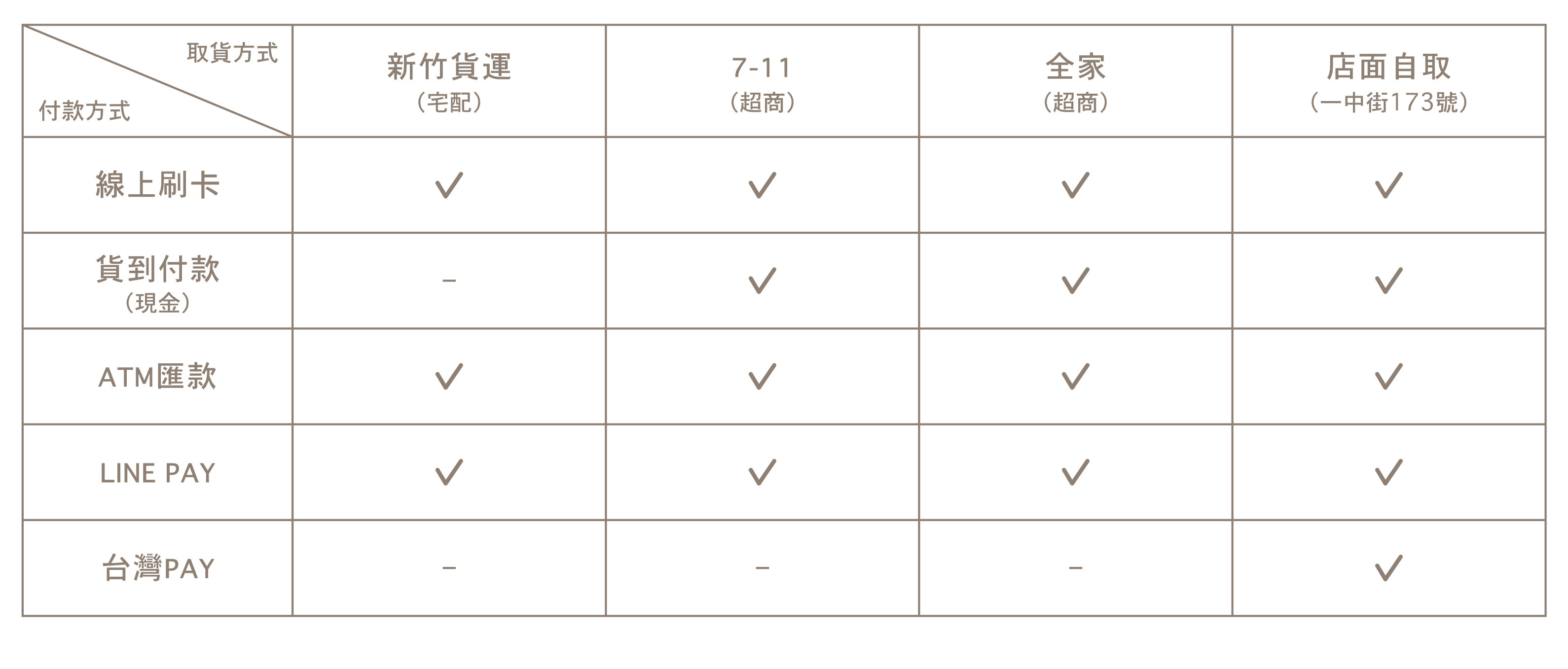 ✦ 以上各項付款方式如因退貨造成原訂單純商品金額購物未達免運標準,仍將於退貨退款時加計原出貨訂單之運費。