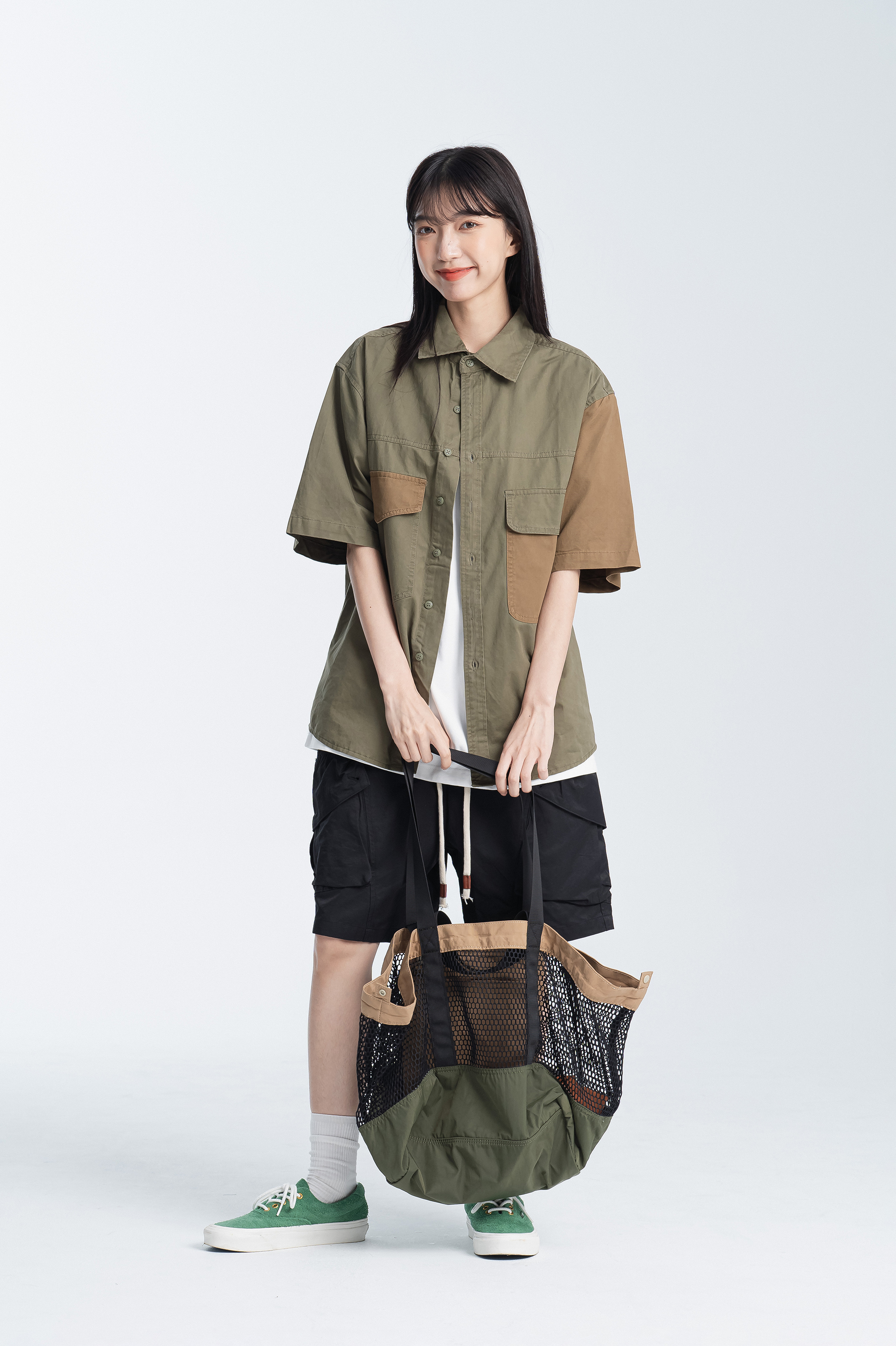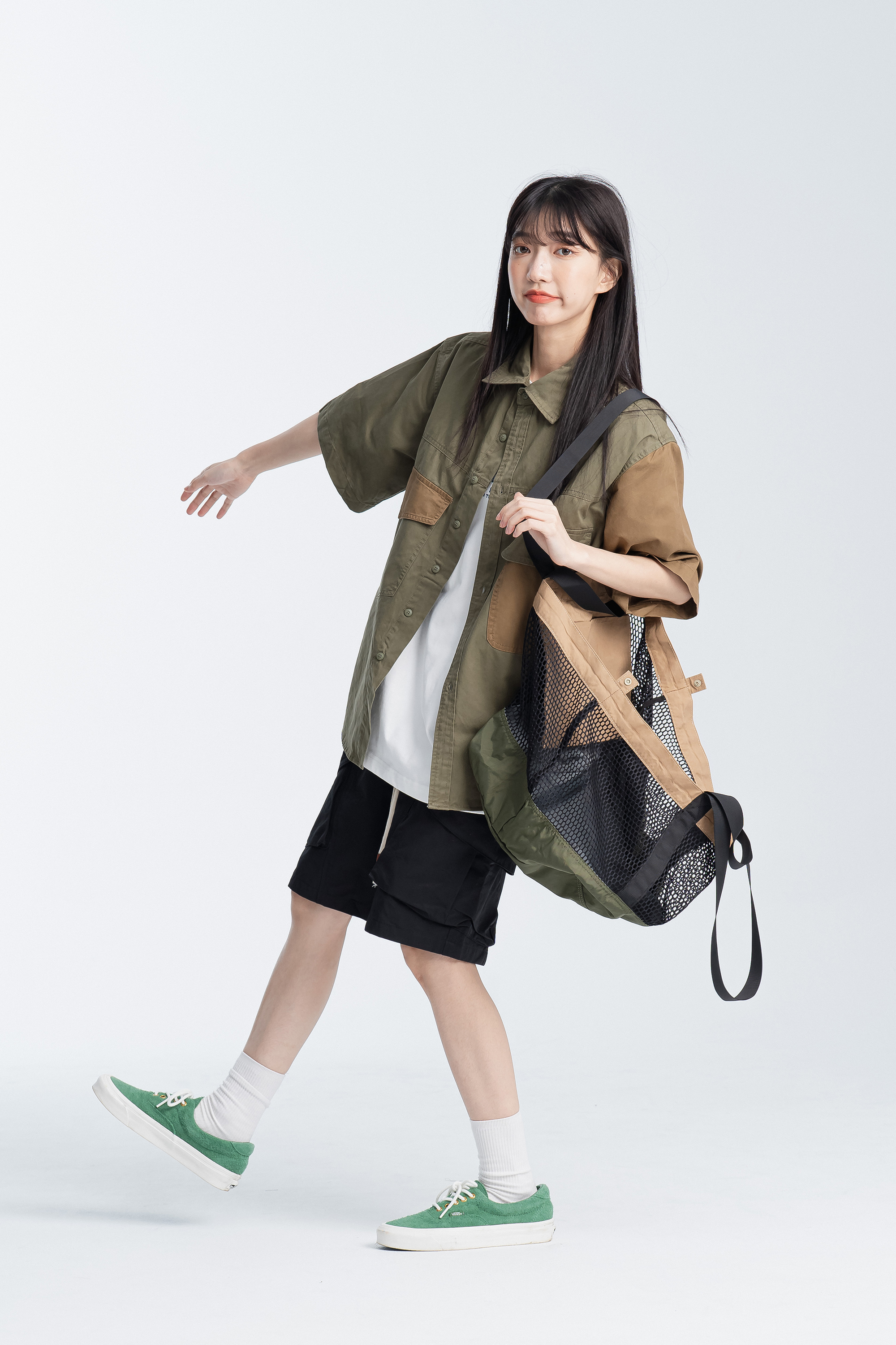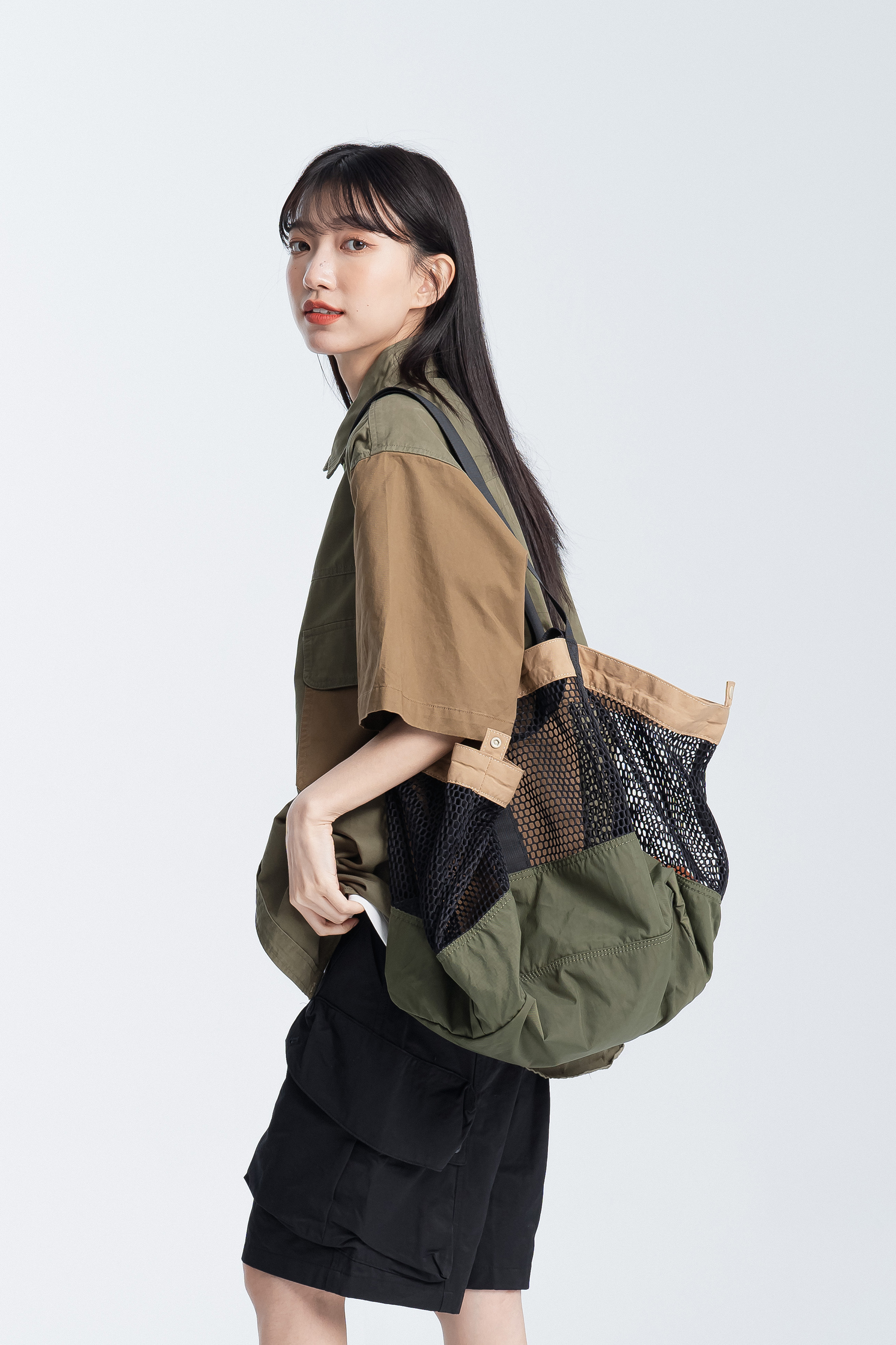 B.卡其背帶:正反顏色 亮橘底 / 灰綠底