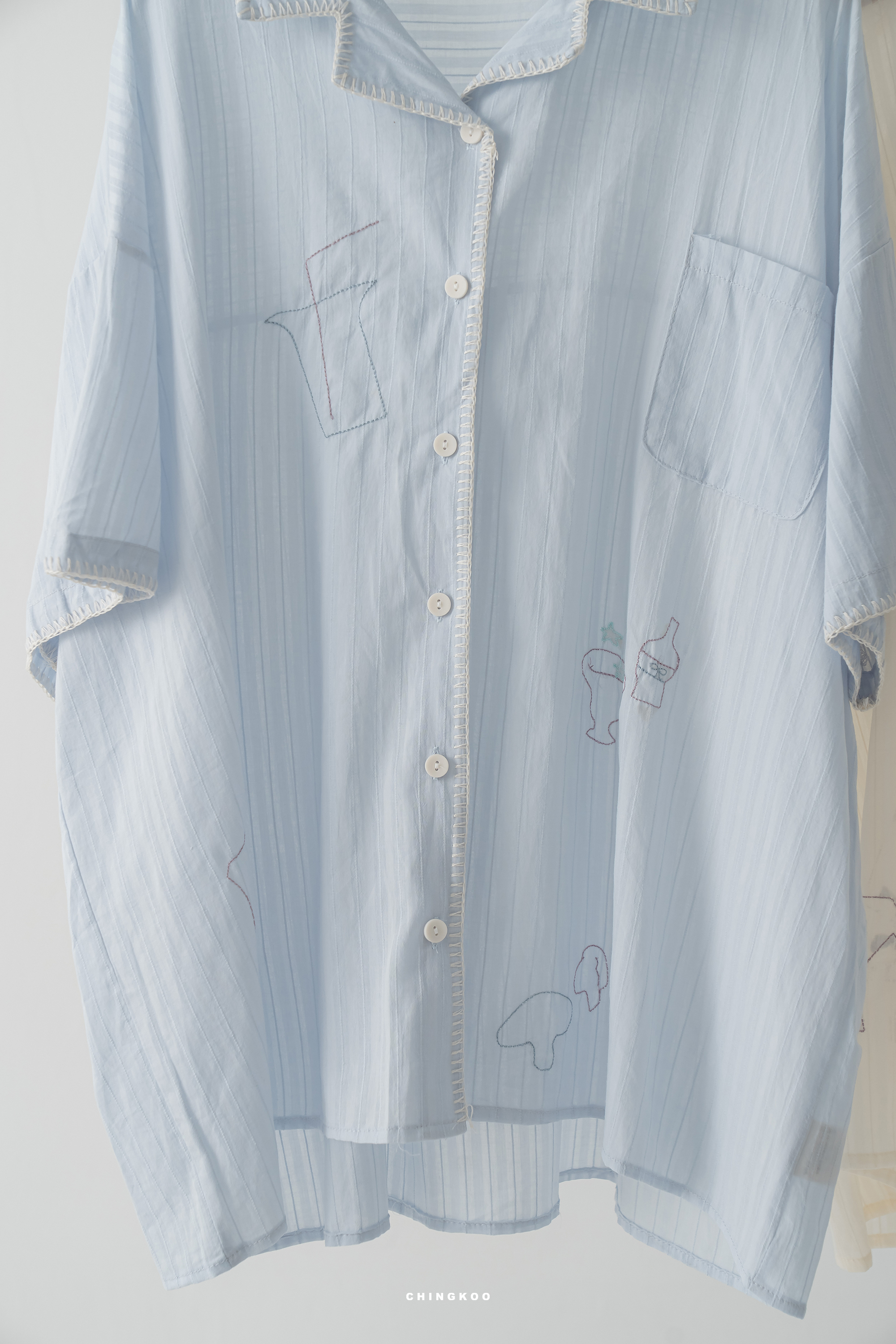 - 造型車線刺繡,撞色滾邊