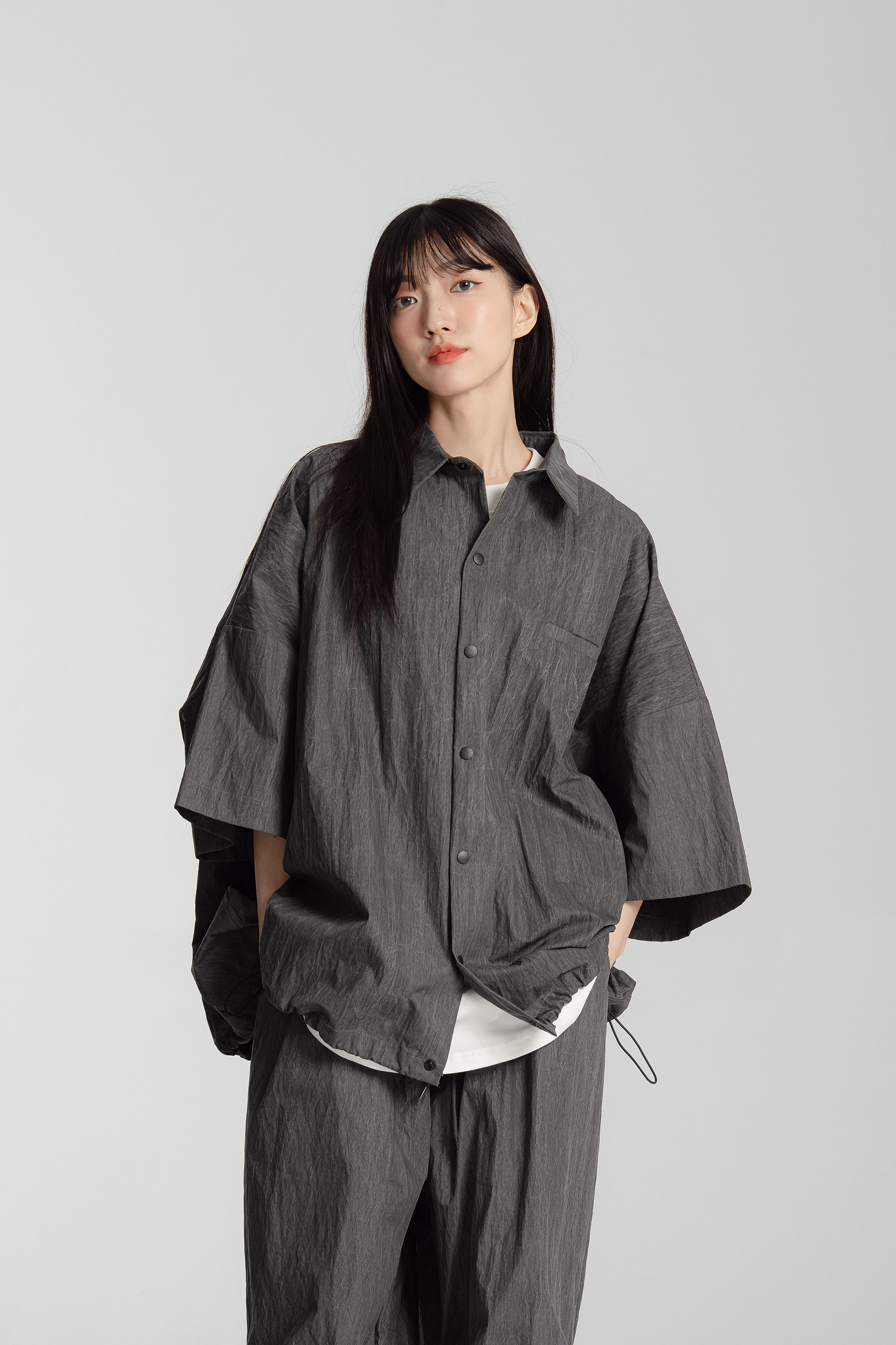 M / 衣長:77 肩寬:80 胸圍:184 下擺寬:92 袖長:21.5 袖口寬:23