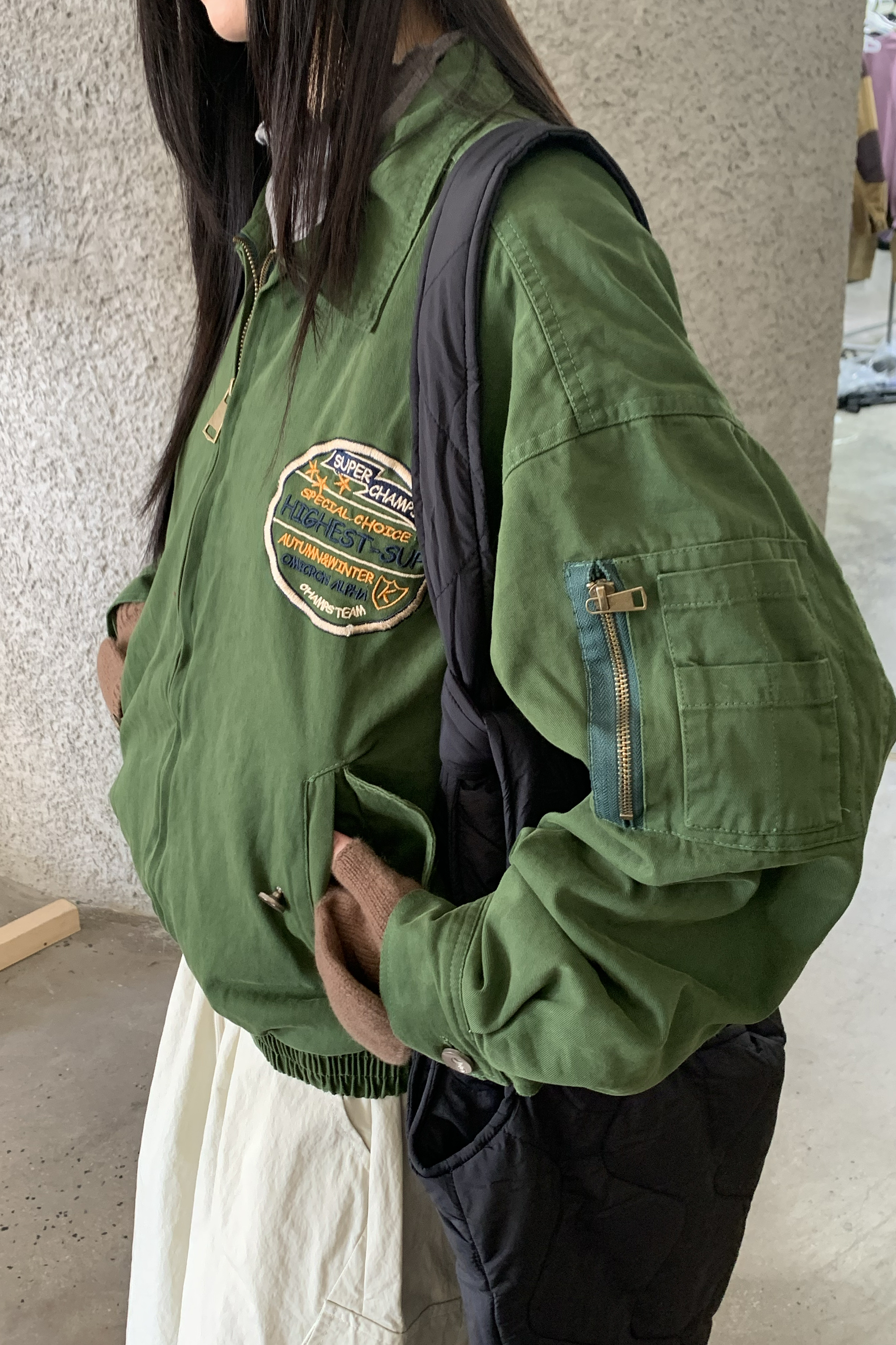 M / 衣長:58 肩寬:56 胸圍:116 下擺寬:40 袖長:55 袖口寬:12