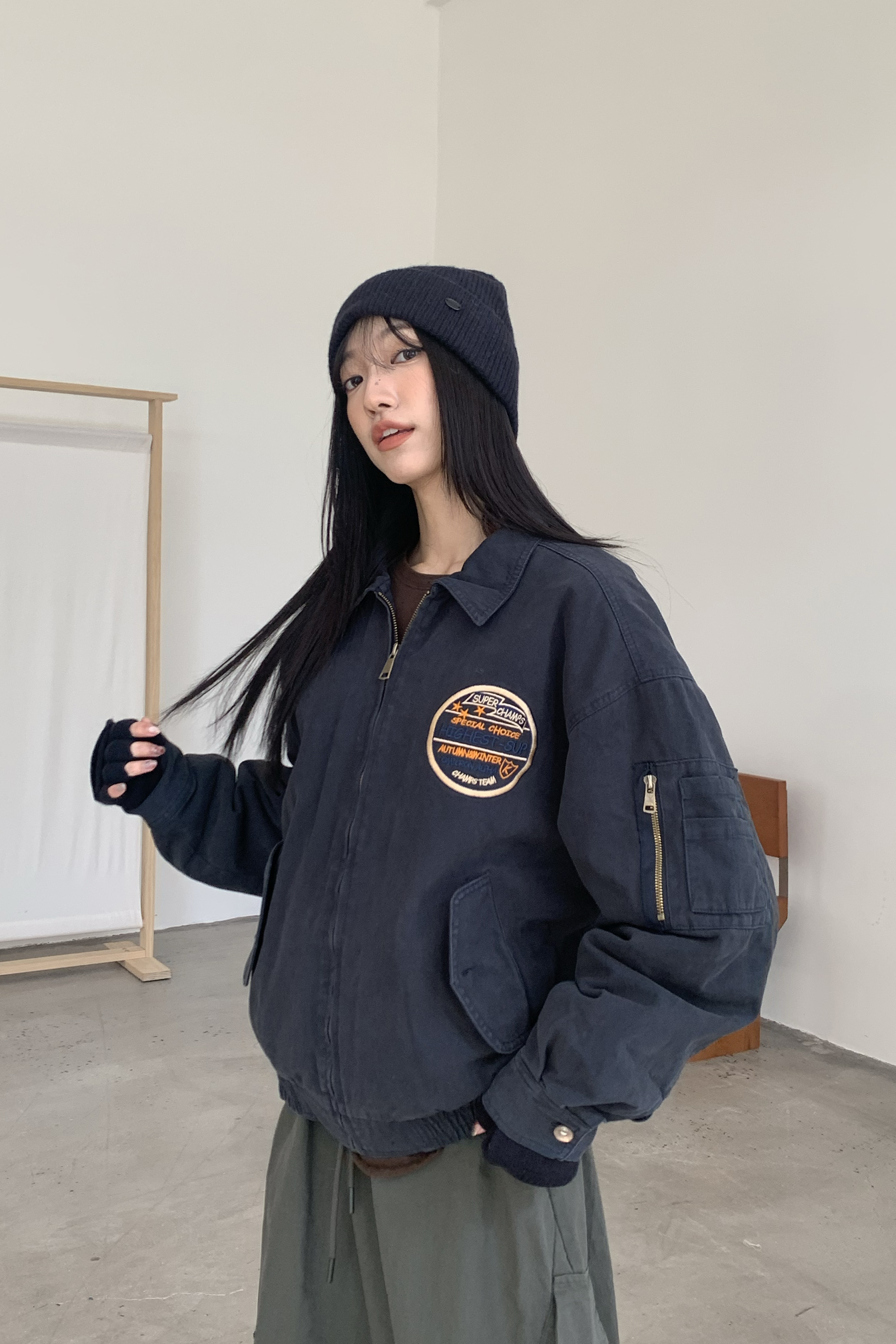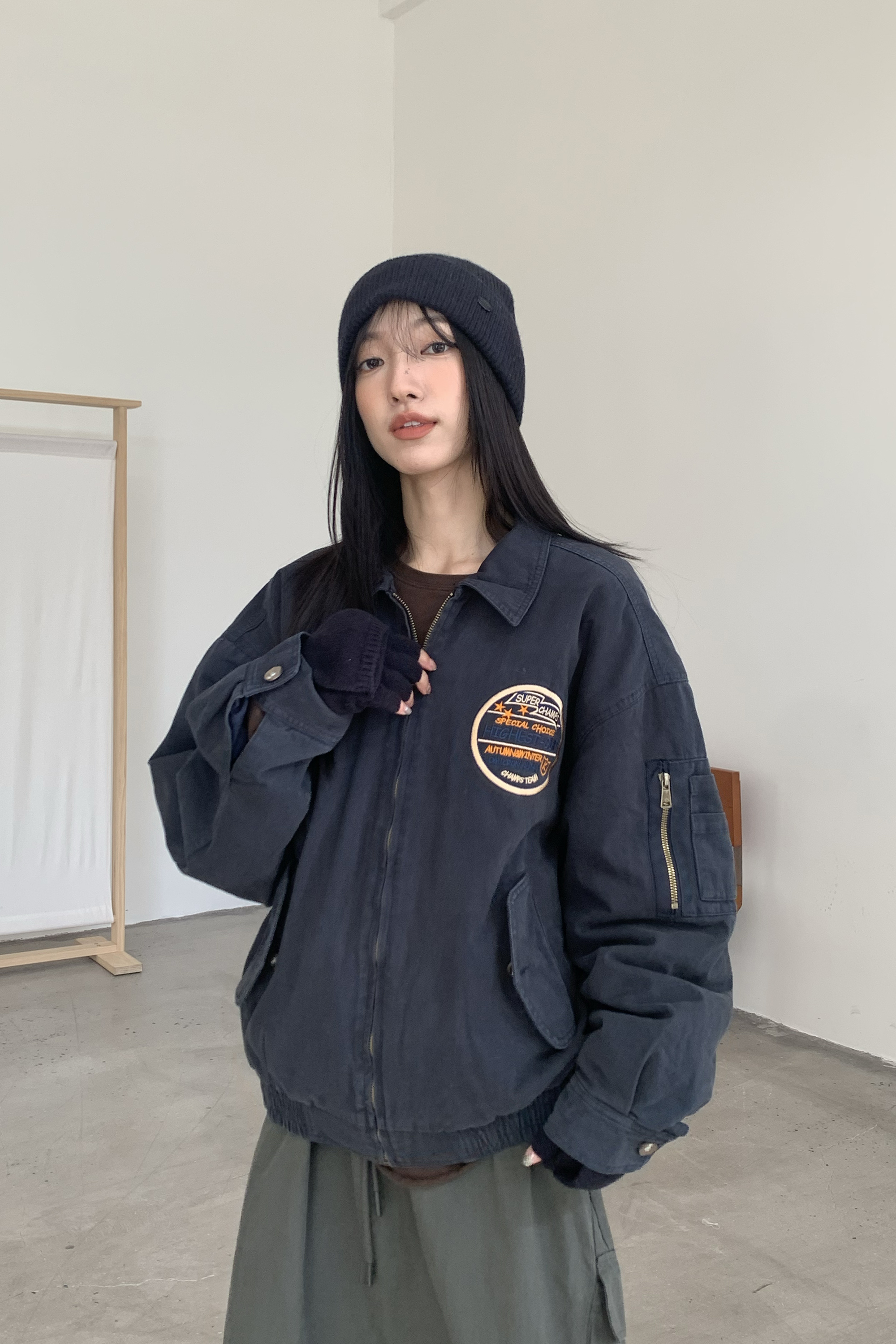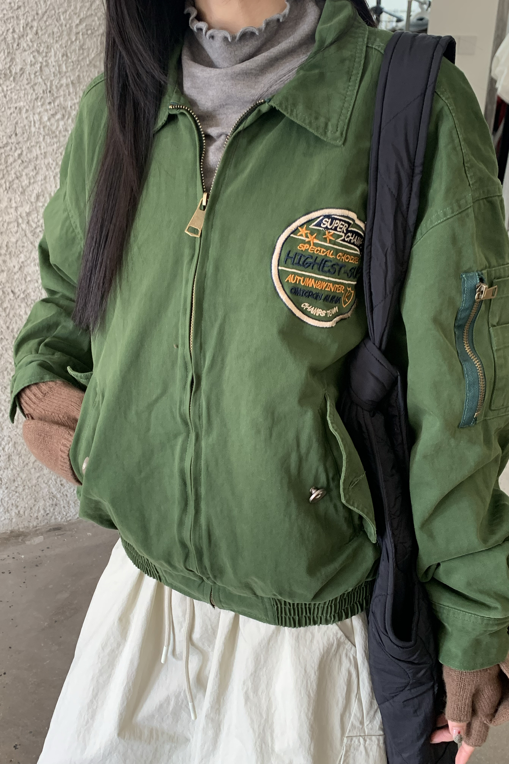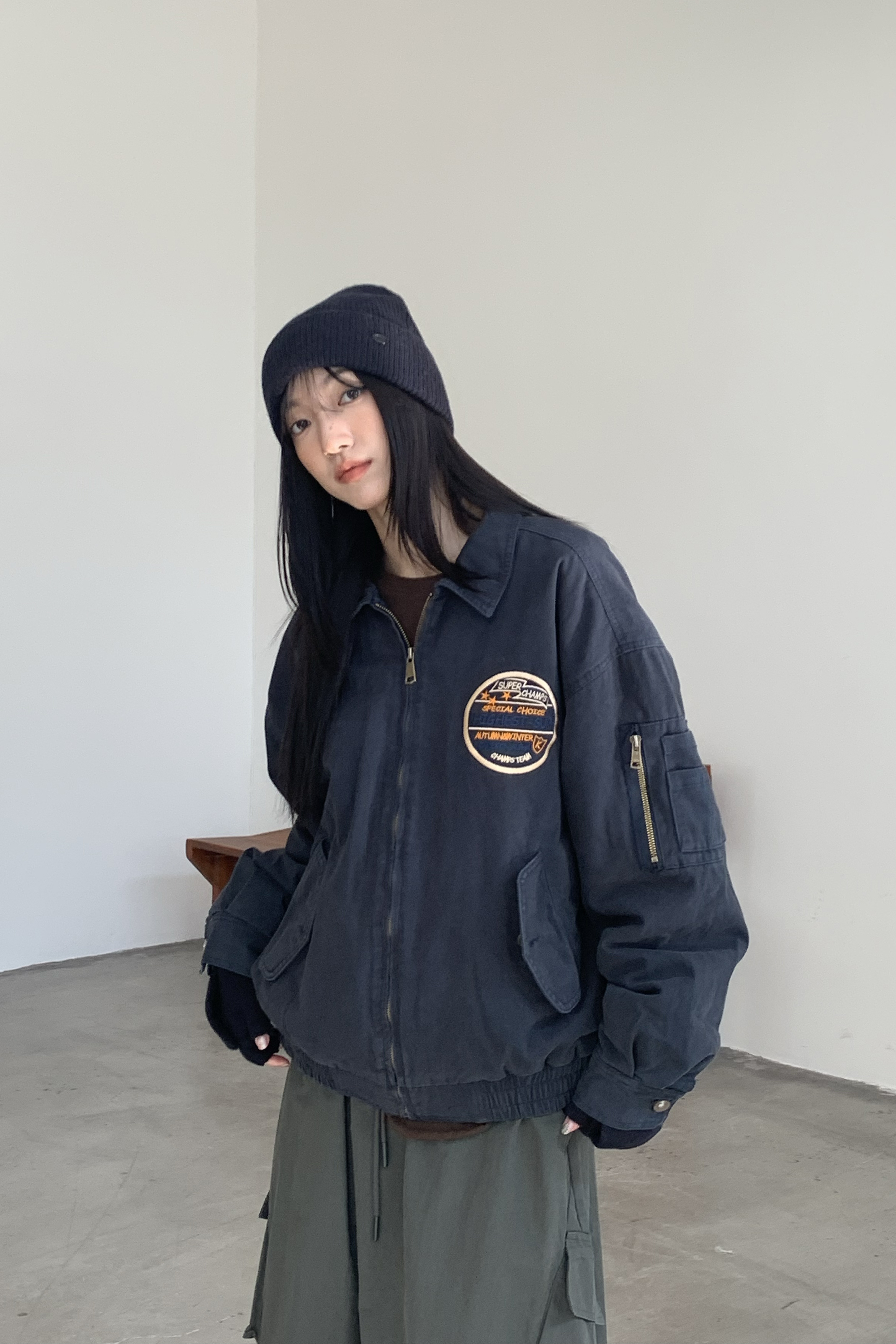 L / 衣長:60 肩寬:58 胸圍:122 下擺寬:48 袖長:58 袖口寬:12