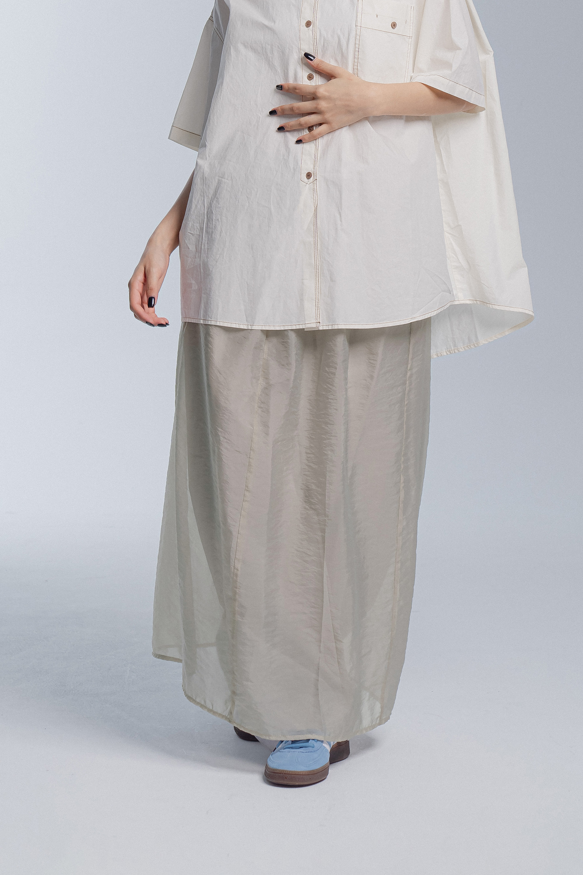 |商品尺寸|裙長:90 腰圍:66-124 (鬆緊) 臀圍:134 下擺寬:67.5
